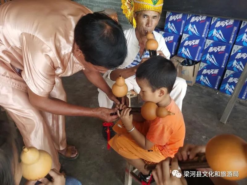 牵头举办此次培训的人员是“勐养镇傣族民间山歌、葫芦丝古调队”的会长、副会长,会长龙大勇是梁河县葫芦丝演奏技艺县级代表性传承人,副会长亢红运是梁河县傣族山歌代表性传承人,两位既是组织者又是培训教师。龙大勇担任葫芦丝演奏培训,亢红运担任民间山歌培训老师,他们分工明确,各负其责,一心只想把民间文化传承好。看着他们耐心授课的样子,相信梁河的文化将走得更远。