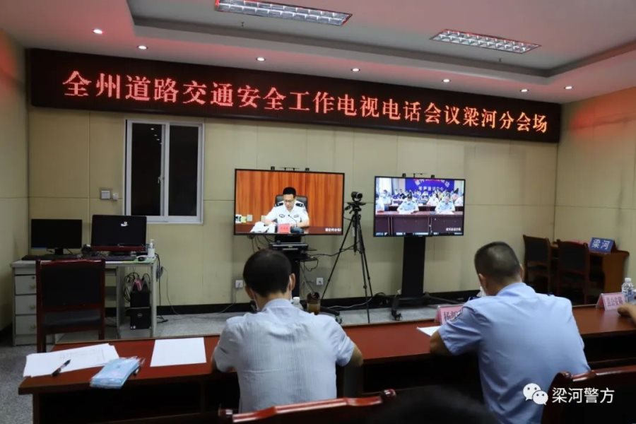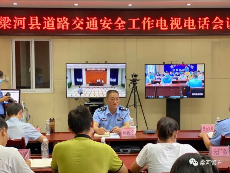“9月2日上午,德宏州人民政府召开全州道路交通安全工作电视电话会议。梁河县副县长、公安局长杨新万,县局专职副书记张俊,县交通安全领导小组成员单位分管领导、派出所交警中队长等20余人在梁河分会场参加会议。