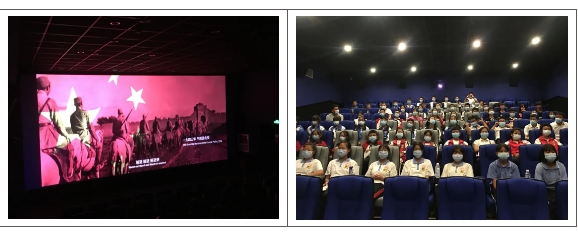 最后,同学们到万象影城观看了红色电影《为国而歌》。作为庆祝中国共产党建党100周年的献礼片,《为国而歌》以国歌的创作背景为主线,讲述了抗战年代,一群心系祖国命运的青年音乐家用音乐去战斗,用音符鼓舞人民斗争的伟大事迹,当电影中嘹亮的国歌声响起,学生们的爱国热情也被点燃,许多人跟着影片小声歌唱起来,活动达到了高潮。
