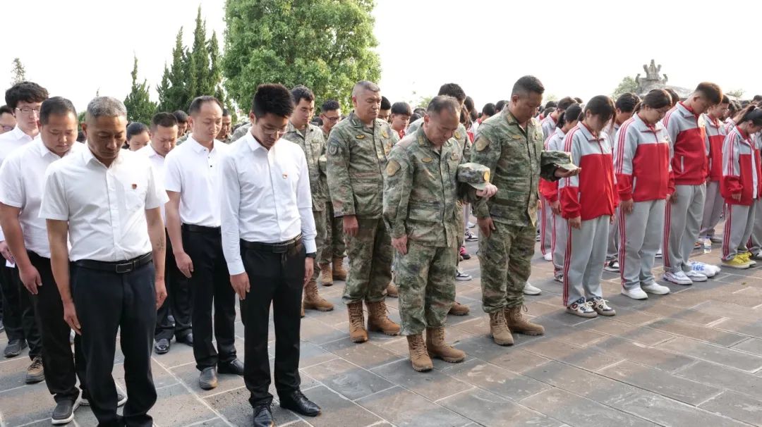 伴随着悲壮的《烈士号角》,纪念活动开始。全体人员高唱中华人民共和国国歌,肃立默哀,深切缅怀为党、国家和人民英勇献身的革命先烈。默哀毕,全体党员在烈士纪念碑前重温入党誓词;县职业高级中学学生献唱《我们是共产主义接班人》,表达继承革命先辈光荣传统、沿着光荣路程奋勇前进的远大志向,学生代表作了感悟发言,抒发对革命先烈的敬仰和浓浓的爱国之情;县民政局干部职工以诗歌朗诵的方式,向长眠于此的革命先烈表示深切怀念。