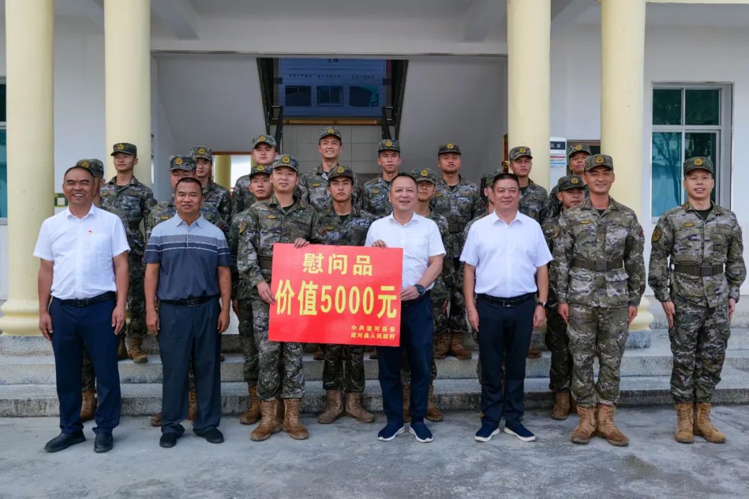 7月30日至31日,县委书记朱文科,县委副书记、县长何胜富分别率队前往县武警中队、县人武部等地,亲切慰问驻梁部队官兵、优抚对象代表及走访光荣之家。慰问组向全体驻梁部队官兵致以节日的问候和崇高的敬意,对他们舍小家顾大家,视驻地为故乡、把人民当亲人,在维护梁河县社会稳定、促进经济发展中作出的重要贡献表示衷心的感谢。他强调,全县上下要深入学习领会习近平总书记关于双拥工作和退役军人的重要论述,强化思想政治引领,提升服务保障水平,搭建就业创业平台,抓实双拥共建。要加强队伍政治、能力作风和制度机制建设,形成多方协同格局,大力弘扬爱国主义精神,全力支持国防事业,持续巩固和发展军政军民团结的大好局面。