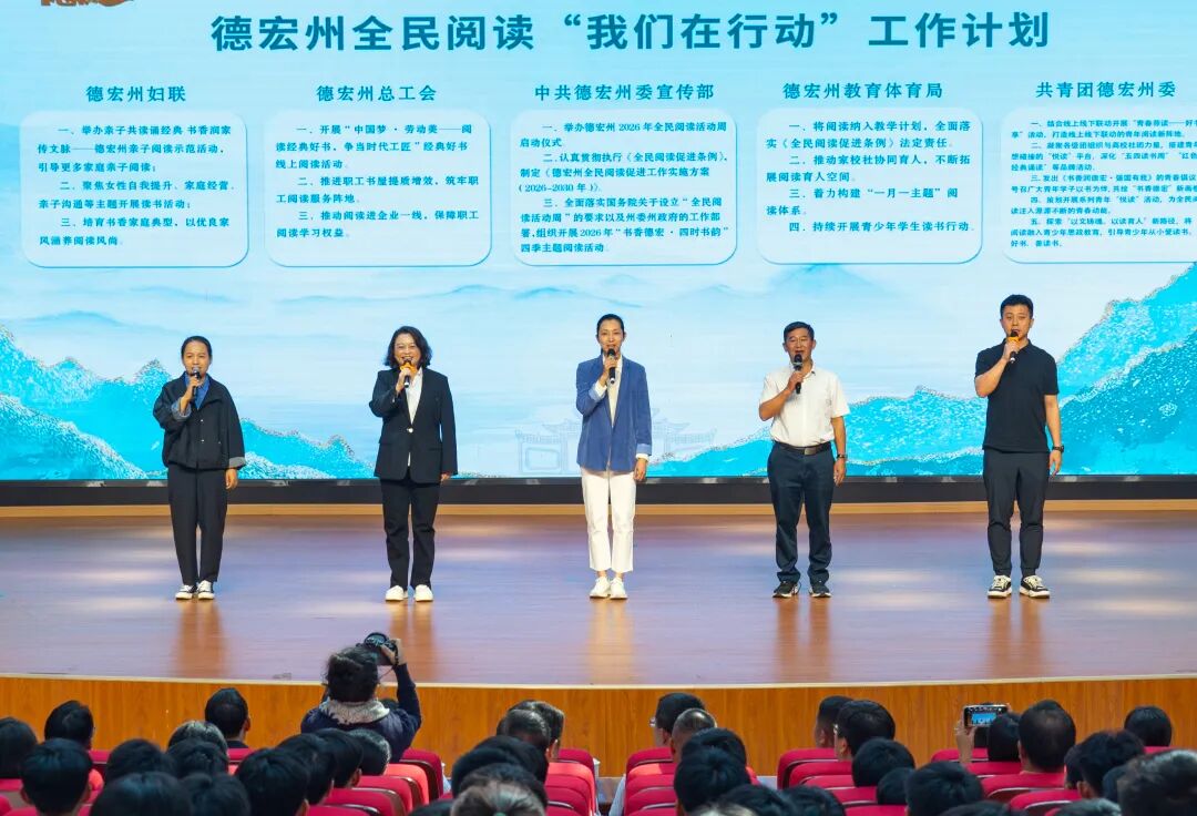 活动现场发布了“书香德宏”LOGO,州委宣传部、州教育体育局等五部门联合发布“我们在行动”全民阅读工作计划,并共同发出阅读倡议。活动同步启动举行德宏州版权宣传暨护苗绿书签活动,向学生代表发放绿书签,守护青少年健康成长。德宏新华书店有限公司、德宏州融媒体中心向遮岛镇中心学校、梁河县职业高级中学捐赠优质图书,助力校园书香建设。