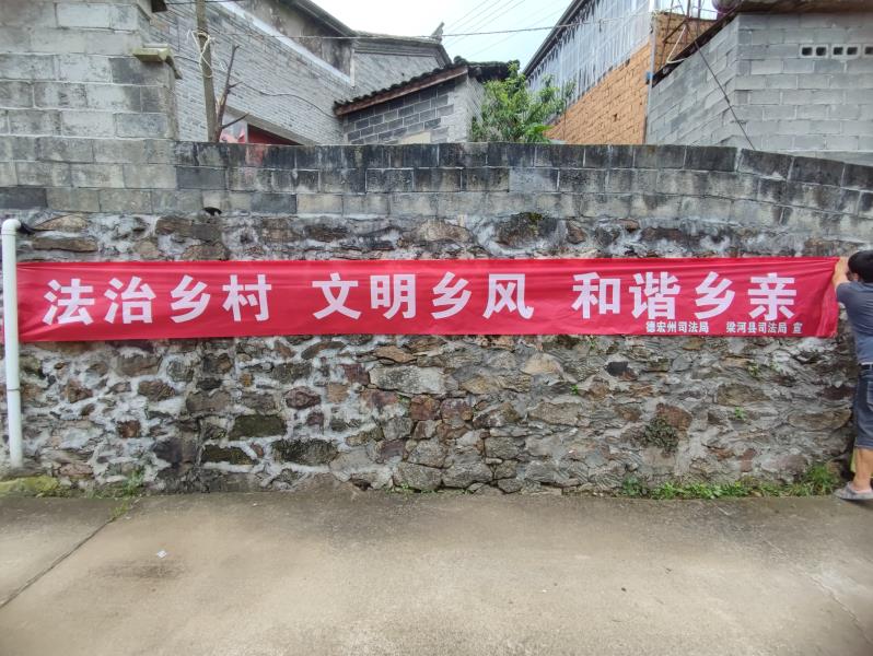为加大法治文化阵地建设,扩大法治宣传覆盖面,增强法治文化影响力、渗透力和感染力。近日,德宏州司法局向挂钩村二道河发放了18条石凳,8条横幅,8块展板。作为全乡唯一的普法强基示范村,此举动有效夯实了基层乡村治理的法治基础。下面就让我们随永强支书一同走进法治氛围浓郁的二道河吧。