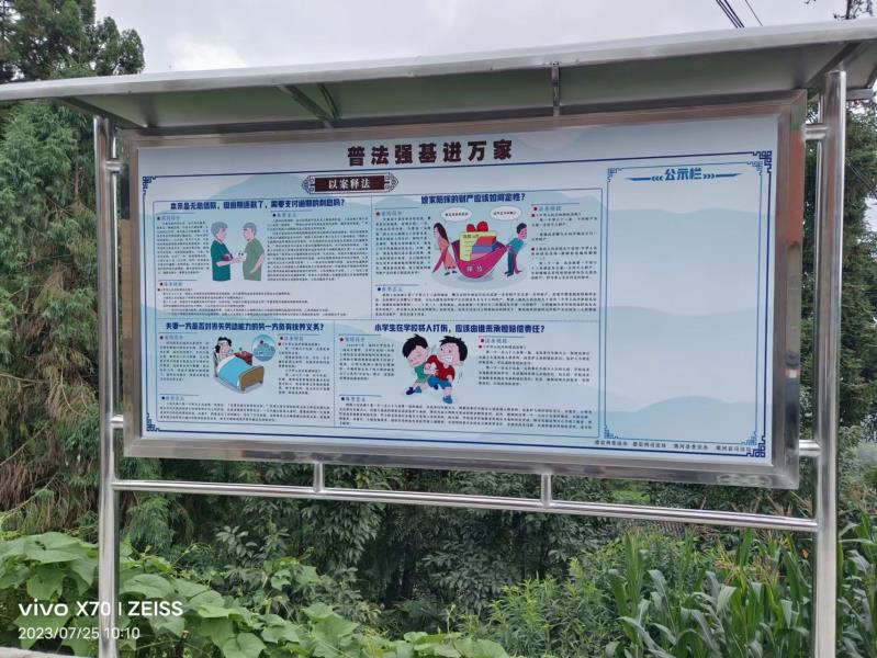 杨永强支书向我们介绍道:为充分将这批普法资源用好用活,我们会上研判定址,确保全村七个村民小组和其它人员聚居的公共区域全覆盖。