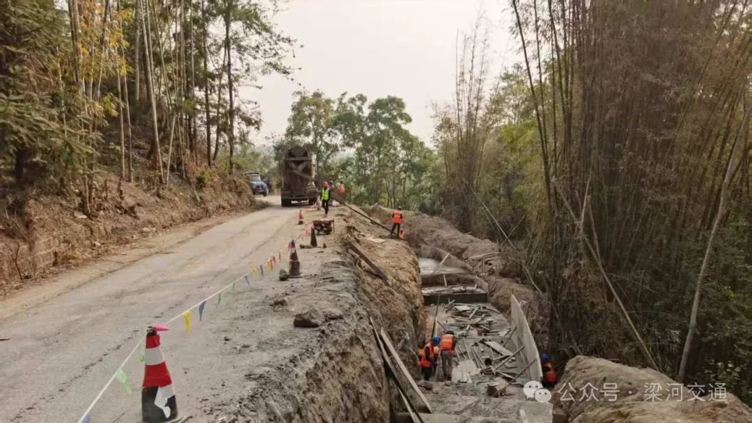 截至4月,完成清理表土5800平方米、砍伐树木2500棵、挖根800棵、土石方开挖15000立方米、浇筑混凝土挡墙1460立方米。目前,正在进行路基土石方开挖、混凝土挡土墙施工及2号拌合站建设。