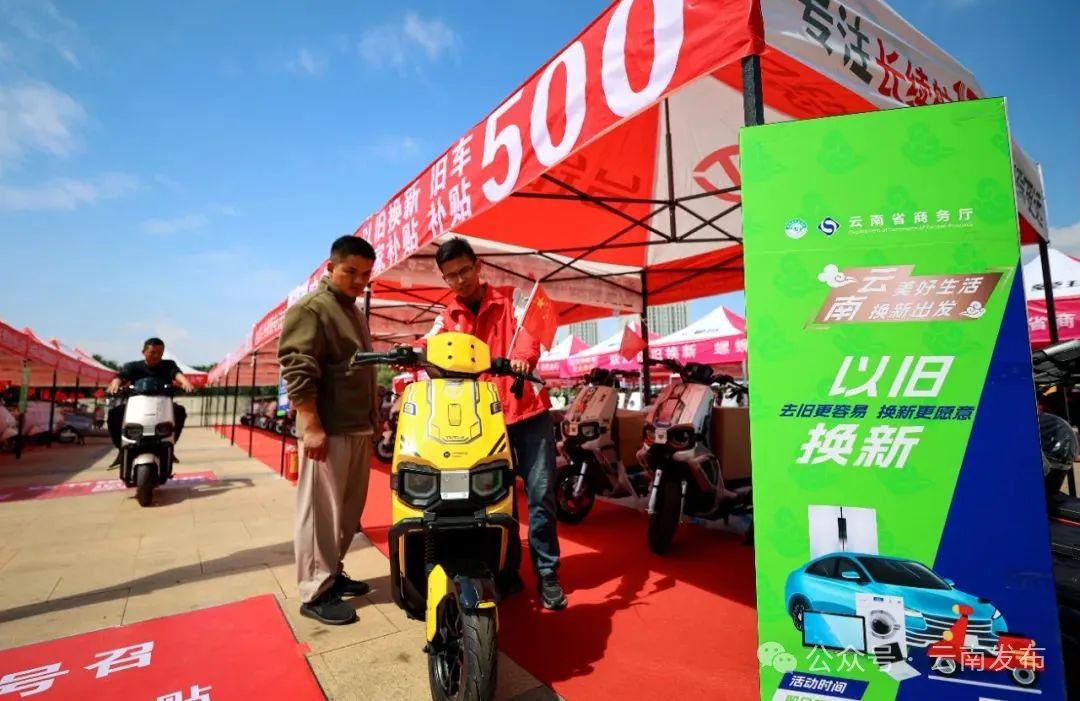 消费者在云南省2025年消费品以旧换新活动上选购电动自行车 图源:云南日报
