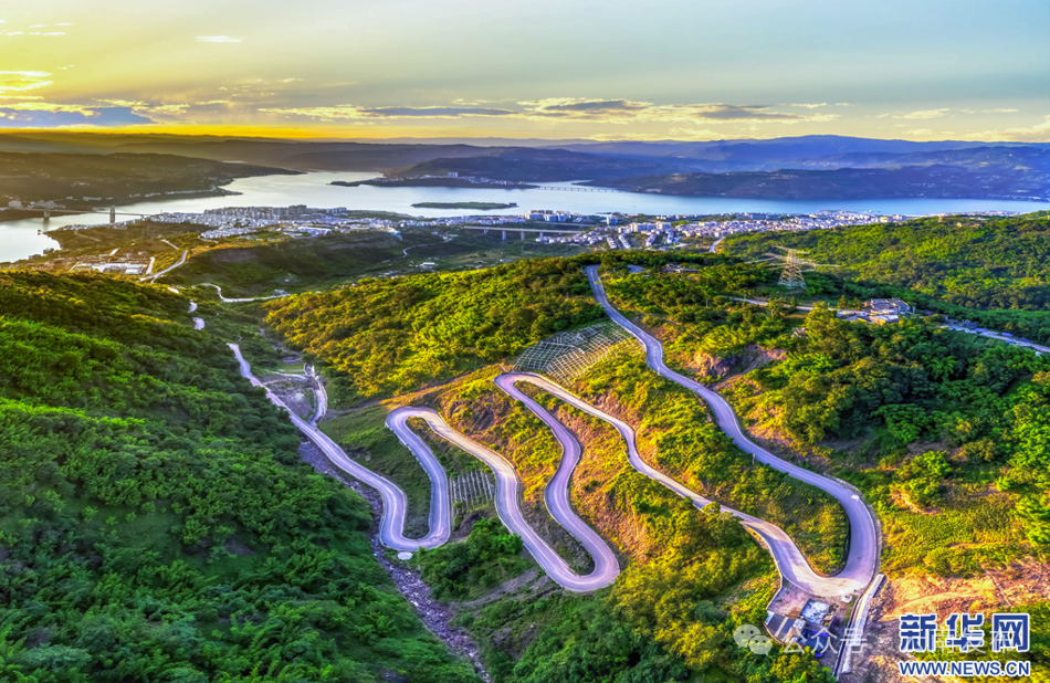 夕阳映照下蜿蜒山间的昭通绥江乡村公路 图源:新华网 曾三东 摄