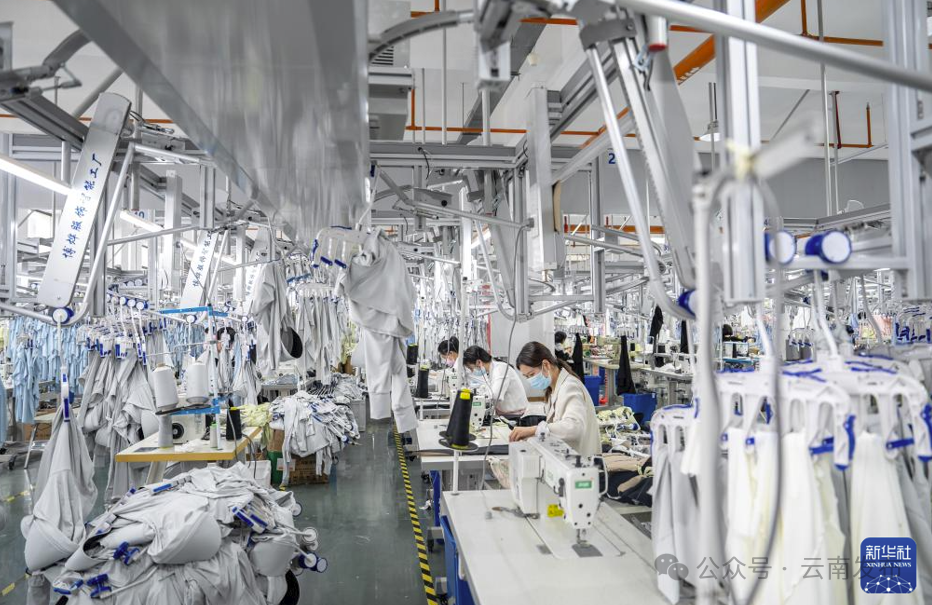 昭通市镇雄县居民在镇雄纺织服装产业园制作防晒服 图源:新华社 胡超 摄