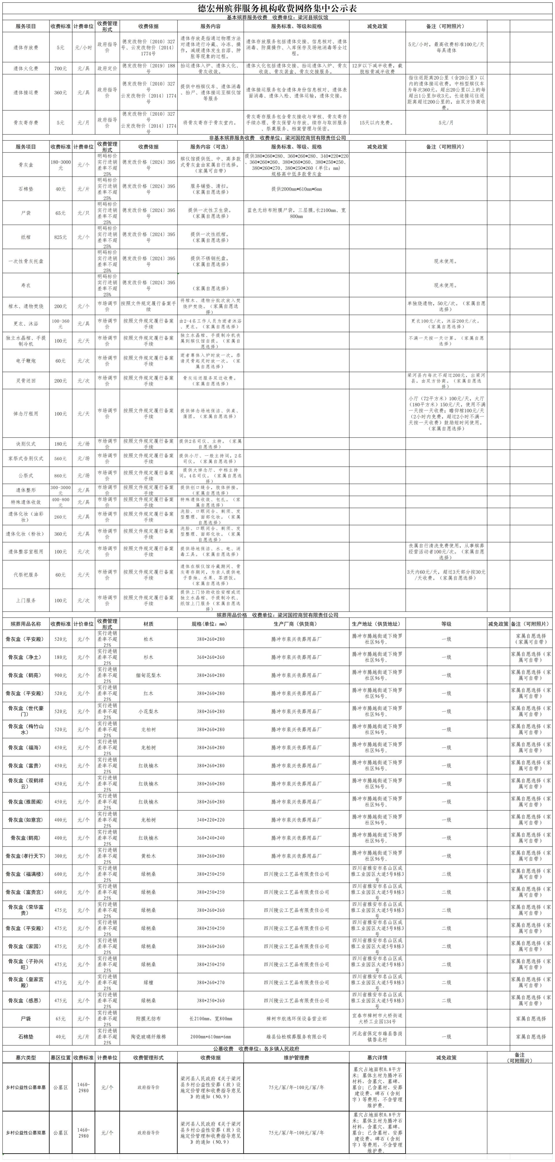 德宏州殡葬服务机构收费网络集中公示表(梁河县)