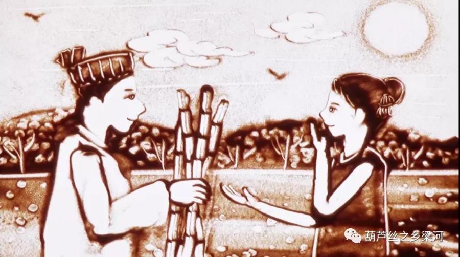 版本一是这样说的:传说上古时期,有一年勐养江发大水,傣族情侣桑亮和少玉在自制的竹筏中漂浮,因竹筏承载不了两人重量,少玉便跳入滚滚洪水中,把生的希望留给了桑亮……桑亮思念少玉,每天在挂满葫芦的窝棚中以泪洗面,一天,当桑亮又在江边沉思凝望时,从风吹过的葫芦孔里听到了一种“仿佛哭诉的呜咽声”,正在悲思中的桑亮灵光一闪,他采摘了造型最好的葫芦和竹子,做成了史上第一支葫芦丝,然后每日对着江水吹奏,天长日久,竟演绎成了一首如诉如泣的经典歌曲——葫芦丝古调,后被葫芦丝学者、专家称为傣族的爱情诗歌。