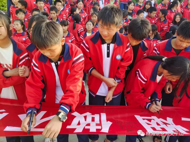要自觉远离烟草,主动做拒绝吸烟宣誓并争先恐后的在“拒吸第一支烟 做不吸烟的新一代”条幅上郑重签上了自己的名字,许下诚挚的诺言。