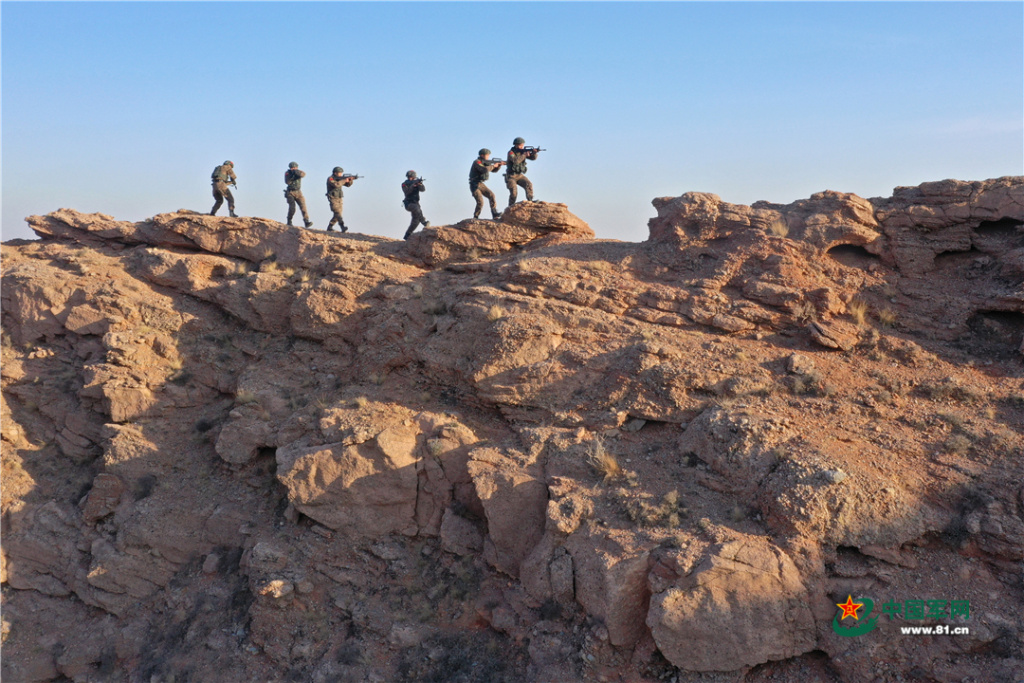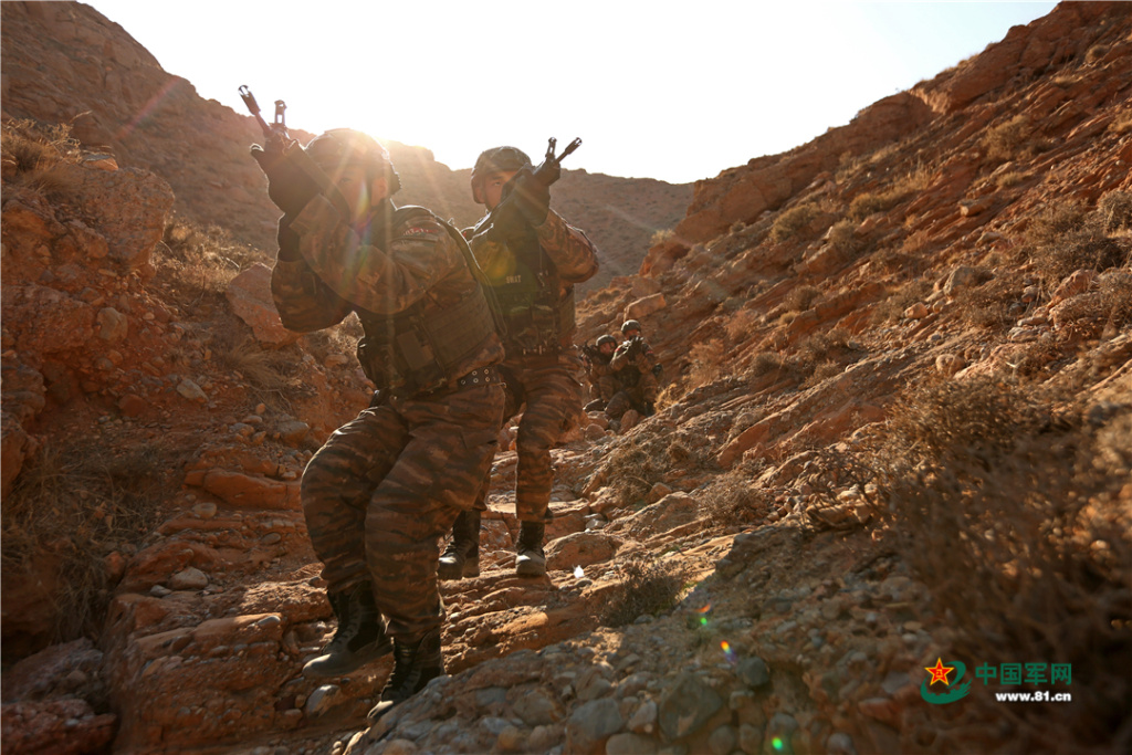特战队员克服天气严寒、地形复杂等不利因素,将日常训练中成果运用到演练中,有效提升了特战队员的反恐作战能力。(周焕成、谢宇摄影报道)