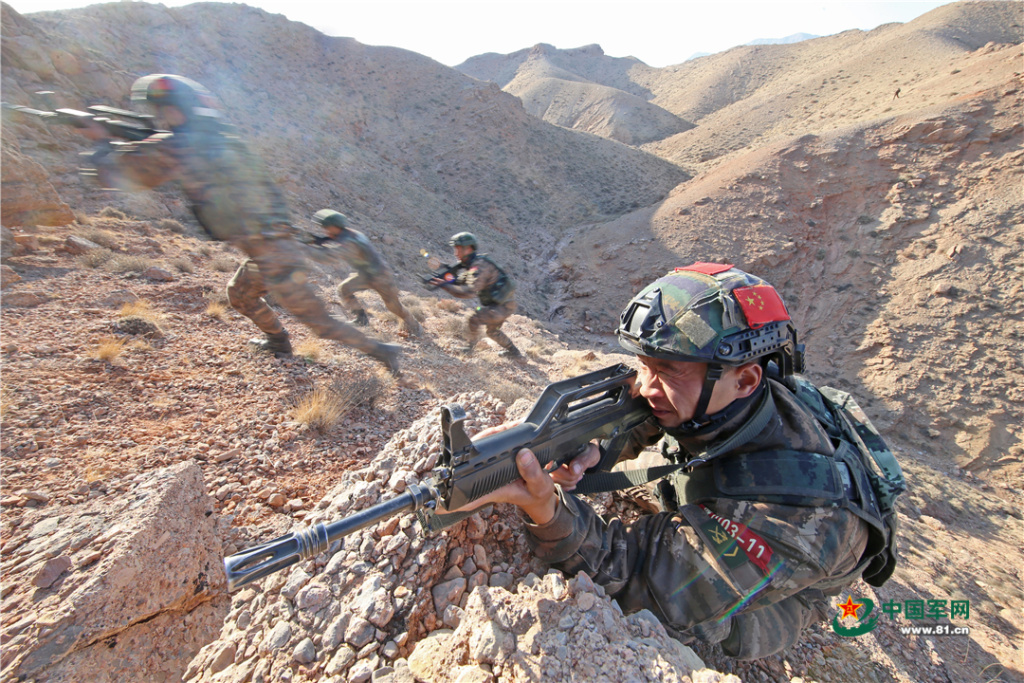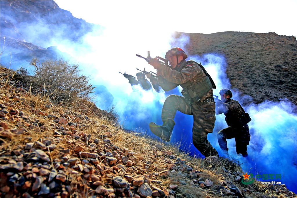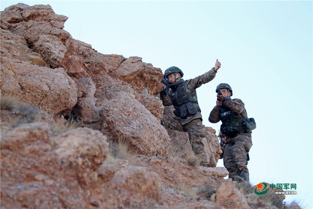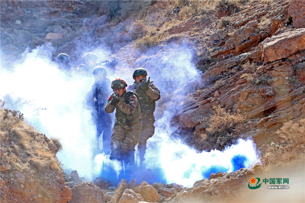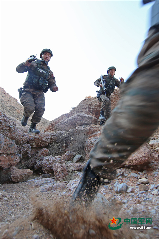 12月13日,贺兰山下寒风凛冽、硝烟四起,正在这里开展“魔鬼周”训练的武警银川支队官兵,充分利用陌生复杂地域展开山地反恐战斗综合演练。