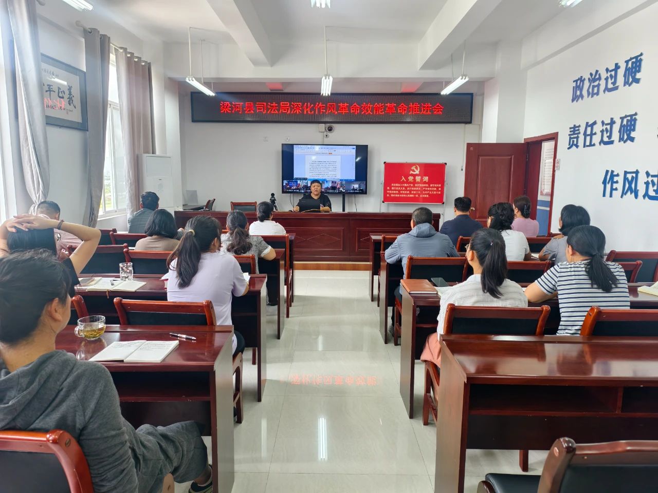 8月7日,梁河县司法局召开深化作风革命效能革命推进会,深入学习贯彻习近平总书记关于党的建设的重要论述,全面贯彻落实省委、州委、县委关于作风革命效能革命工作要求,推动司法行政队伍进一步转作风、提效能、优服务,以务实高效、担当作为的工作作风助推梁河经济社会高质量发展。
