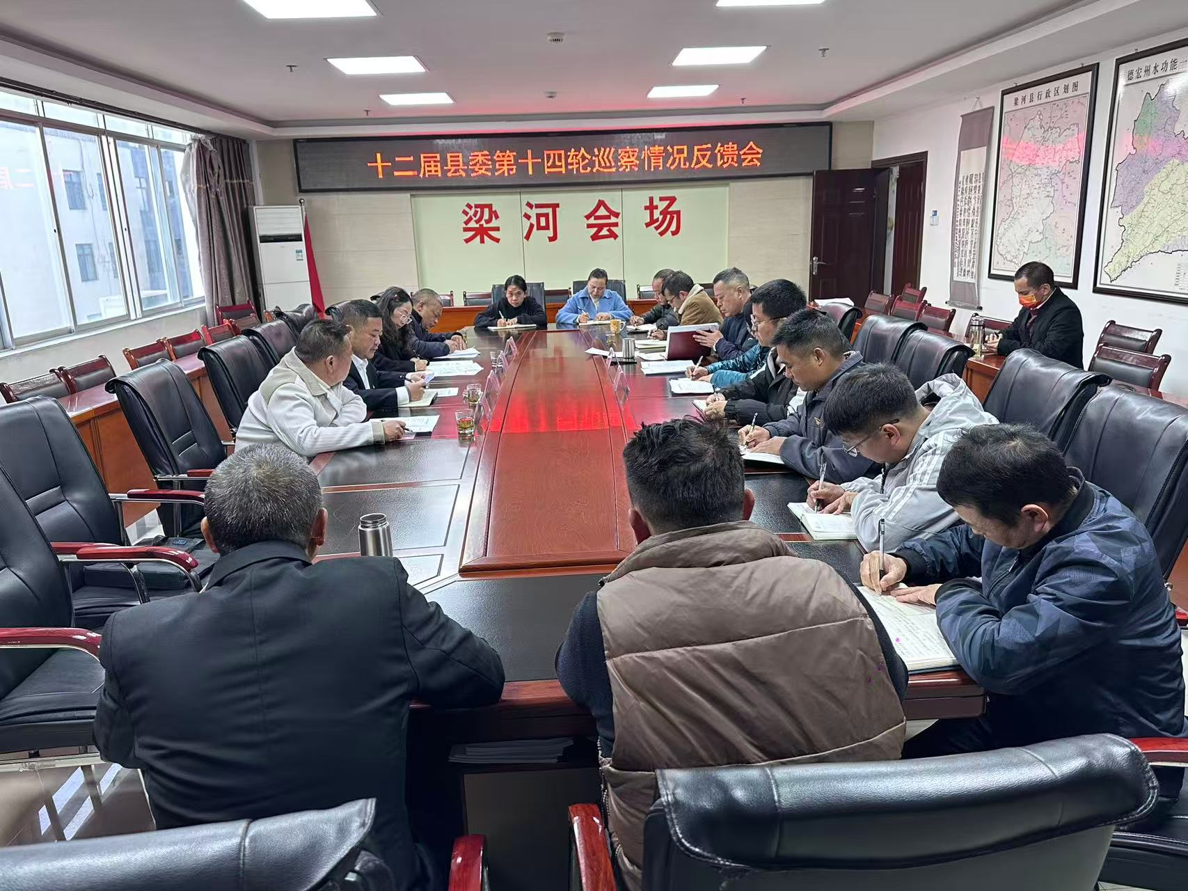 2025年12月23日上午,在梁河县水利局召开十二届县委第十四轮巡察情况反馈会议。县委巡察办主任吴恒伟,县委第一巡察组组长吴欣慕、副组长杨世亮、梁兆传,县纪委监委派驻农业农村局纪检监察组组长杨文叶,梁河县水利局领导班子成员及各股室(站所)主要负责人出席会议。