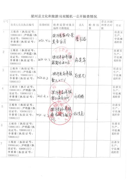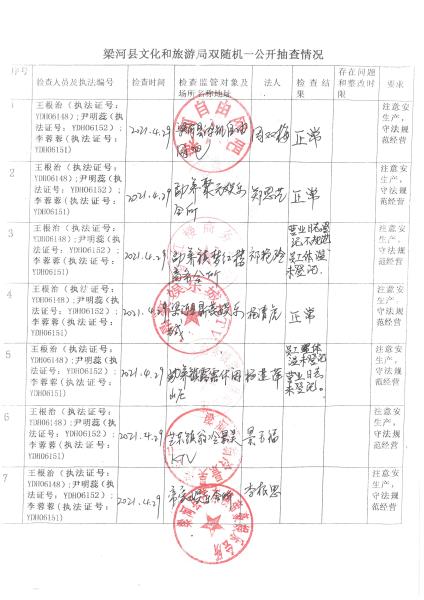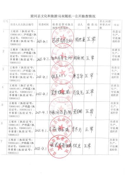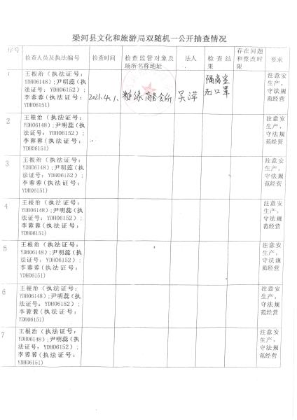 梁河县文化和旅游局“双随机、一公开”抽查情况2022年1—4月