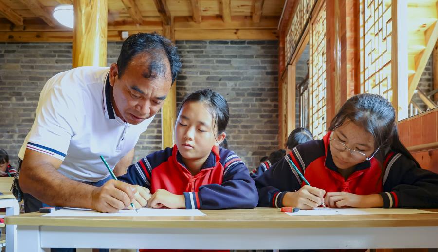 “伯马文化”培训有条不紊的进行着,负责“绘画”培训的辅导老师是梁河县级非物质文化遗产农民画代表性传承人蚌有万老师,蚌有万老师不仅绘画画得好,傣族戏衣制作技艺也是一流的。蚌老师经常担任绘画和傣族戏衣制作辅导老师,个人从不计较得失,一直坚守传授技艺。在这次培训中,都把自己的绘画课安排的满满的,上午主要传授绘画的基本技巧,下午让学生自由绘画,把心中所想的、眼睛看到的绘画出来,然后根据个人喜欢的色彩搭配上色。当学生完成每天的作业时,蚌老师都会根据学生画的内容给予耐心的指导,一笔成画,就在那一瞬间,“指尖”文化的成就就在暑假间,这个培训及传承了民间文化、又让学生学到了与课本上不一样的知识、远离了手机的危害,释放出了孩子原来的文化天赋。