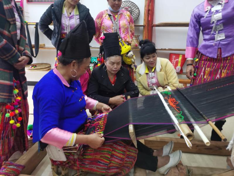 于2022年11月30日至12月1日梁河县文化馆在关璋新村举办了为期2天传承培训,学员分别来自不同乡镇和村寨,有河西乡别董村、曩宋乡关璋新、老村学员,共培训40人次。主要培训了经线、上架、拾抠、捆花棚、抠花、做手工等技艺,在培训过程中,学员勤学好问,老师耐心传授,虽然时间短暂,为能完全掌握技艺,但是起到了让人想学的效果,好多学员发自内地说培训结束后会主动在家学习织锦和做手工。举办这样的培训及保存了传统技艺又让群众学到了一技之长。
