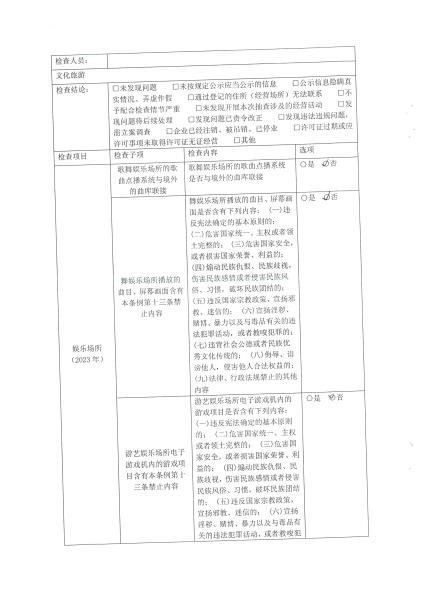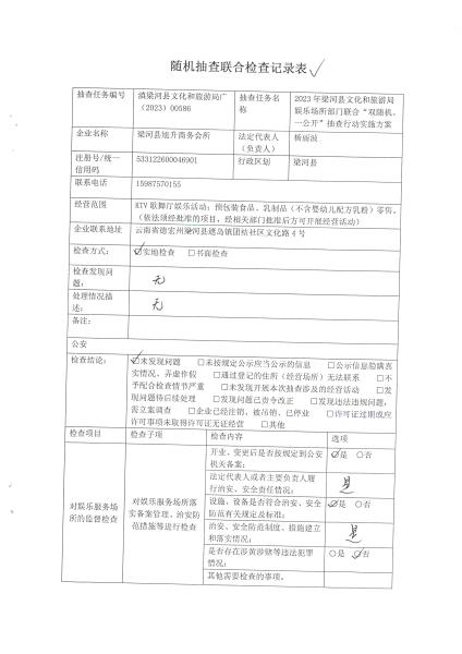 梁河县文化和旅游局“双随机、一公开”抽查情况公示(旭升商务会所)