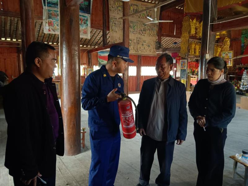 为深入贯彻落实国家、省州关于文物消防安全工作重要指示精神,严防各类火灾事故的发生,深入排查整治文物建筑火灾风险,本着“安全第一,预防为主”的方针。2024年1月31日至2月2日,县文化、民宗、消防等部门及时成立联合检查组先后对全县文物保护单位进行消防安全检查,确保梁河县今冬明春文物古建筑消防安全形势持续稳定。