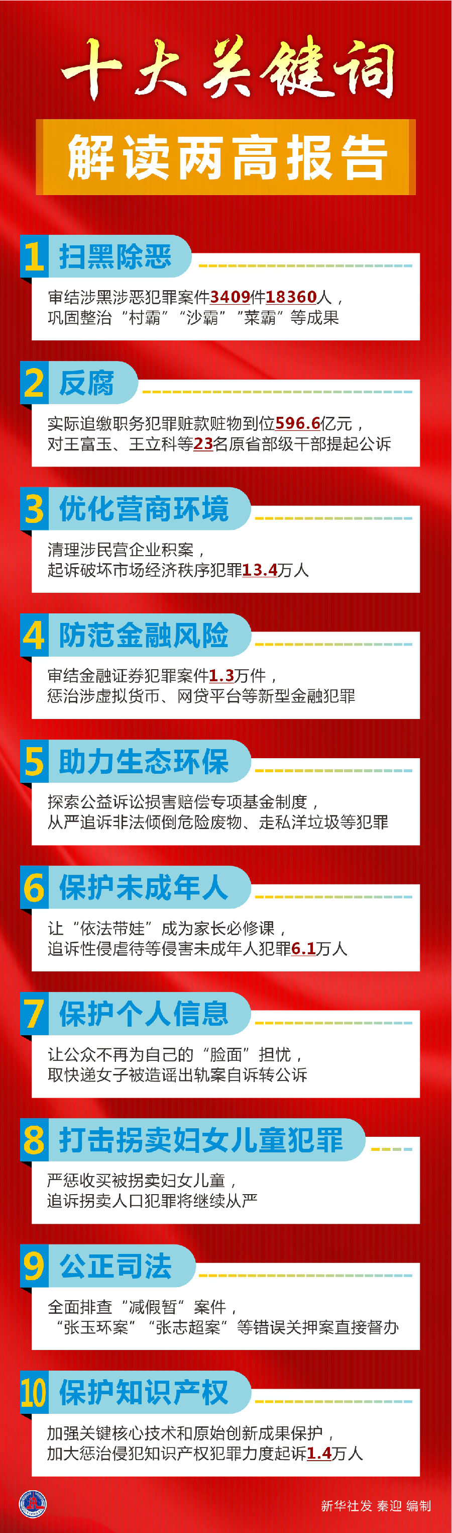 新华社北京3月8日电 题:十大关键词解读两高报告