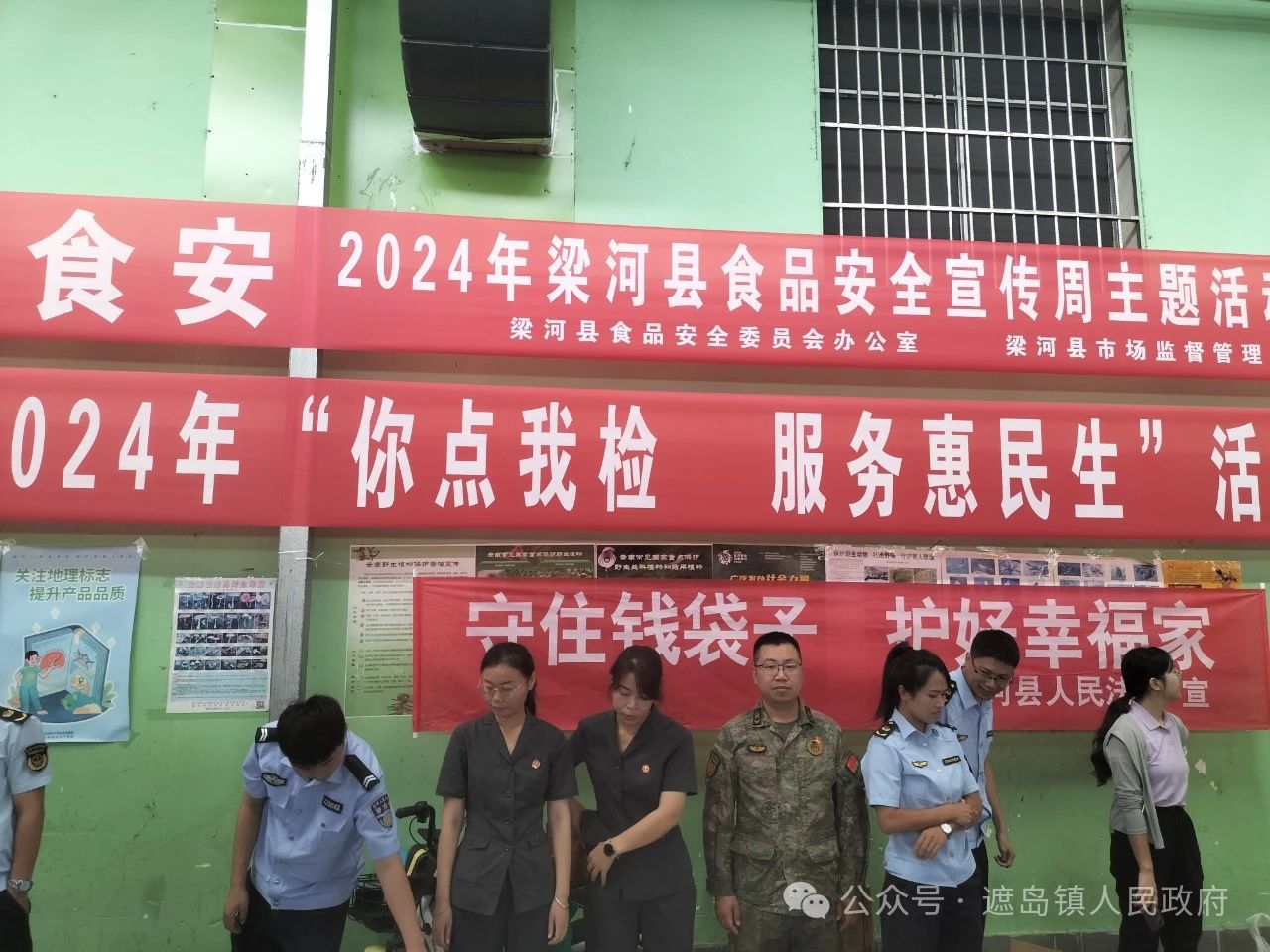 为进一步落实食品安全宣传周活动要求,强化食品安全属地管理意识,推进食品安全共建共治共享。9月27日遮岛镇联合县政府食安办、县委宣传部、县委政法委、县公安局、县市场监督管理局、县人民法院、县检察院、县民政局等30余家单位在广信农贸市场开展“诚信尚俭 共治共享食品安全”为主题的食品安全宣传周活动。