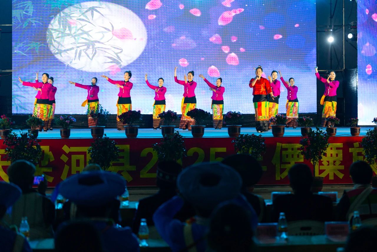 当日,身着七彩“傈僳霓裳”的男女老少齐聚傈花卡广场,现场热闹非凡。舞台上,《傈僳迁徙调》舞蹈尤为引人注目。舞者通过跺脚、摆臂等动作,生动模仿山羊攀岩的姿态,粗犷的舞步与悠扬的合唱交织,完美再现了傈僳先民的迁徙史诗,让观众深切感受到了民族历史的厚重。