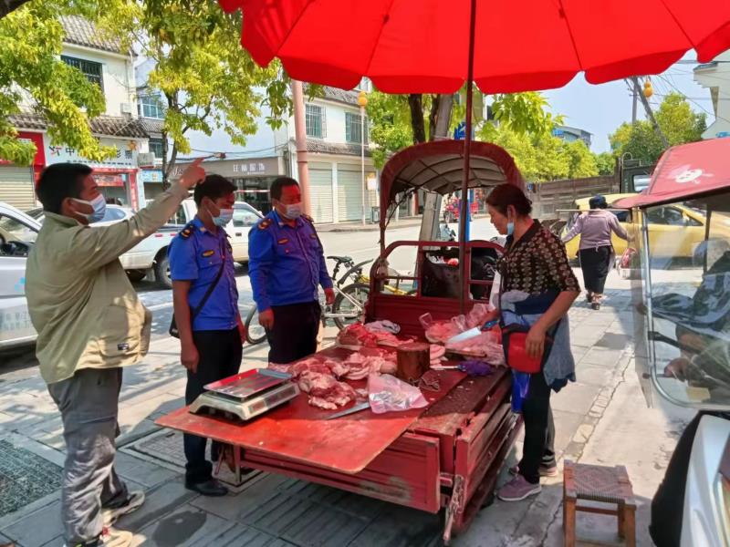 综合执法大队6月1日共出动15名工作人员对广信农贸市场旁占道经营进行整治
