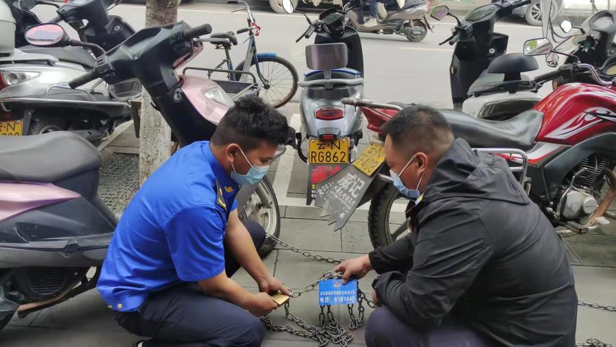 综合执法大队6月4日共出动15名工作人员对农贸市场乱停乱放进行整治
