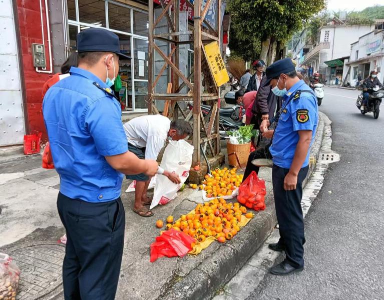 综合执法大队11月12日共出动20名工作人员对遮岛镇派出所门口占道经营进行整治