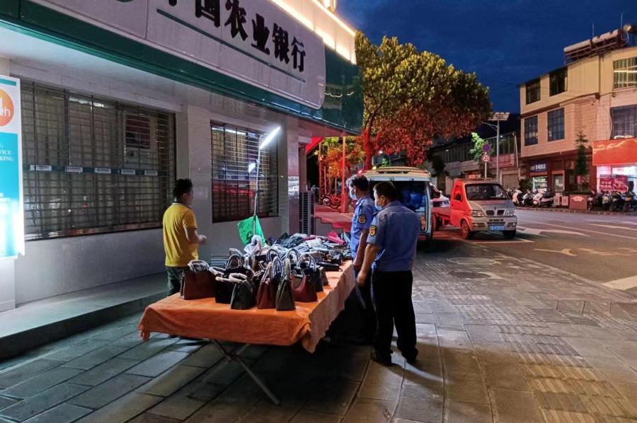 综合执法大队11月11日共出动10名工作人员对先锋路农业银行门口占道经营进行整治