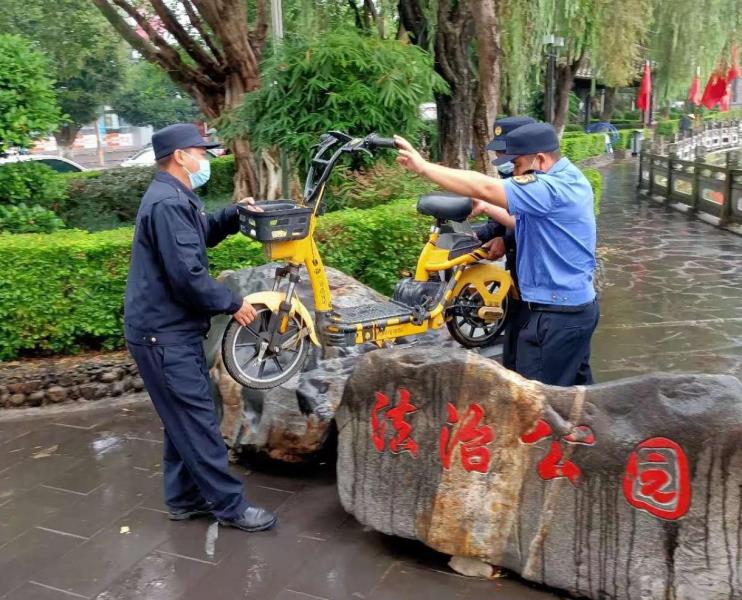 综合执法大队11月13日共出动10名工作人员对龙潭公园乱停乱放进行整治