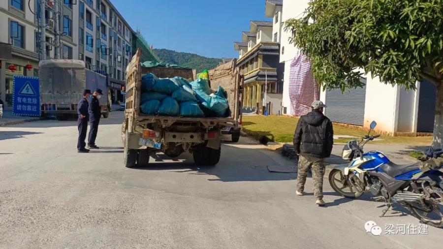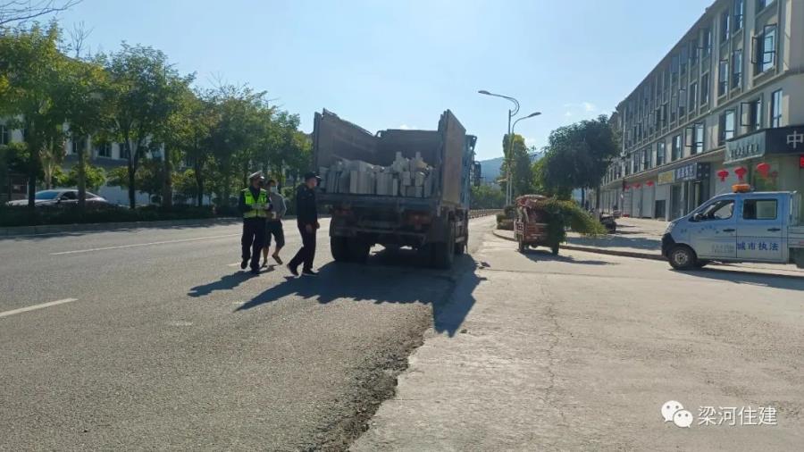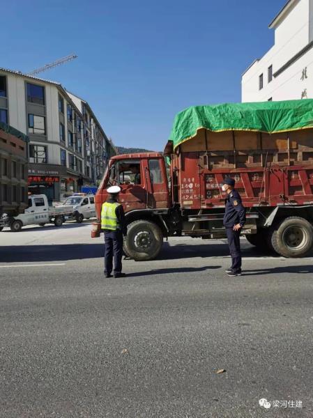 2023年1月12日14时,梁河县城市管理综合执法大队为落实巩固梁河县创文创卫相关工作,加强城市管理,提升环境品质,营造良好的市容环境和氛围,让城市更美丽。城市管理综合执法大队会同县交警大队,在梁河县龙窝大道中亚地产五期售楼部门口设卡对无证运输违法行为、不按规定时间运输、私拉乱倒、超载、密闭不严、沿途泼洒老式渣土车进行专项整治。此次查处行动梁河县住房和城乡建设局集中力量,调动工作人员16人次,共查处违章47起,其中现场处罚38起、现场整改9起。