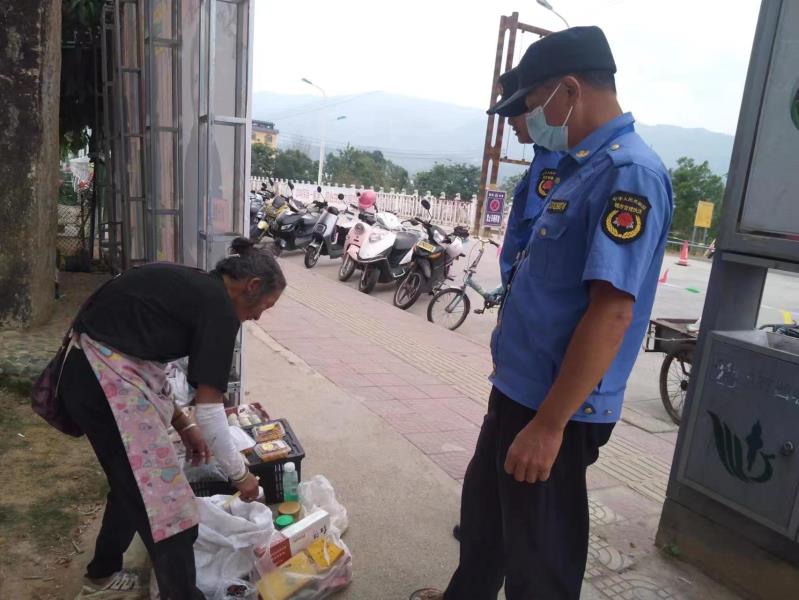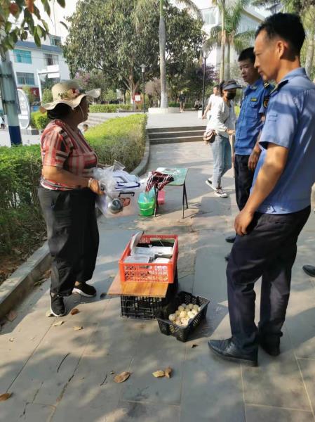综合执法大队5月10日共出动8名工作人员对政府花园占道经营进行整治