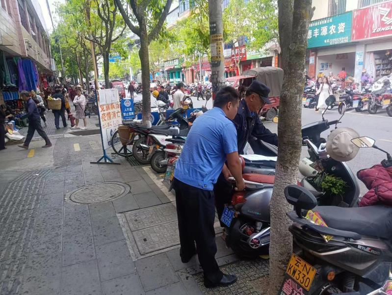 综合执法大队5月11日共出动10名工作人员对广信农贸市场乱停乱放进行整治