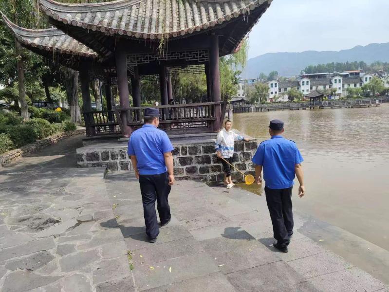 综合执法大队5月13日共出动15名工作人员对龙潭公园群众钓鱼进行批评教育