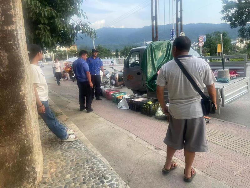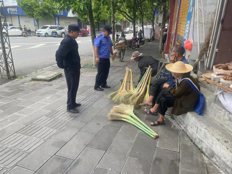 综合执法大队7月31日共出动10名工作人员对振兴商贸城占道经营进行整治