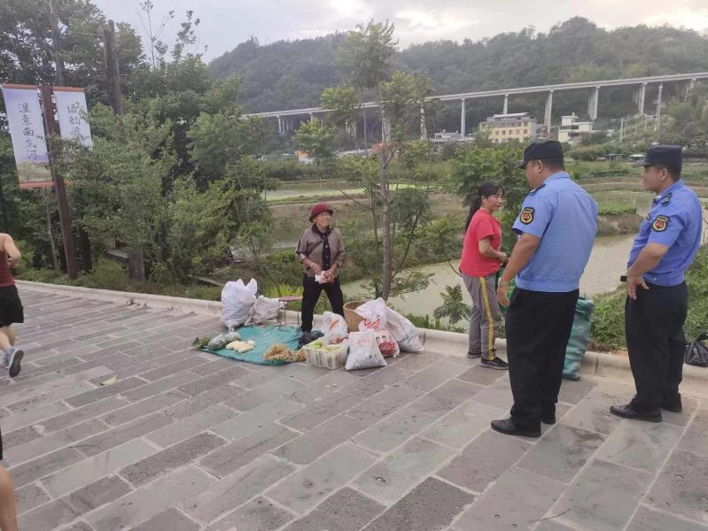 综合执法大队8月14日共出动10名工作人员对大金塔步道占道经营进行整治