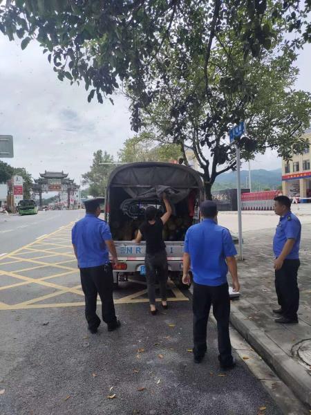 综合执法大队10月8日共出动15名工作人员对消防大队门口占道经营进行整治